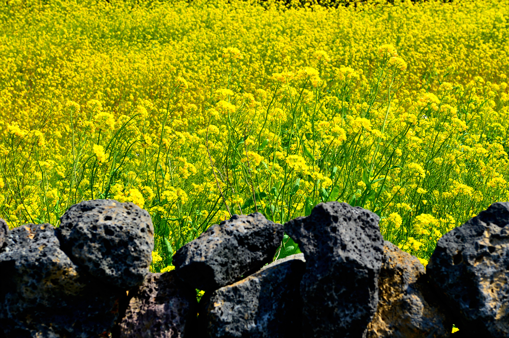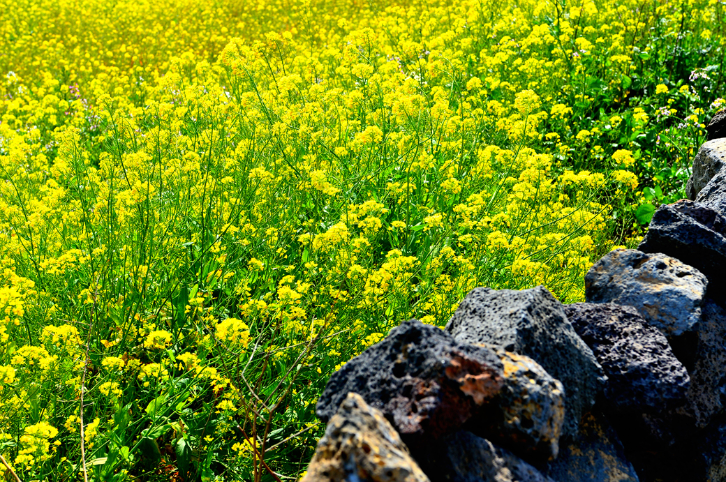 제주의 독특한 돌담과 어우러진 풍경도 유채꽃 사이의 야생화도 아름답기만 하다.