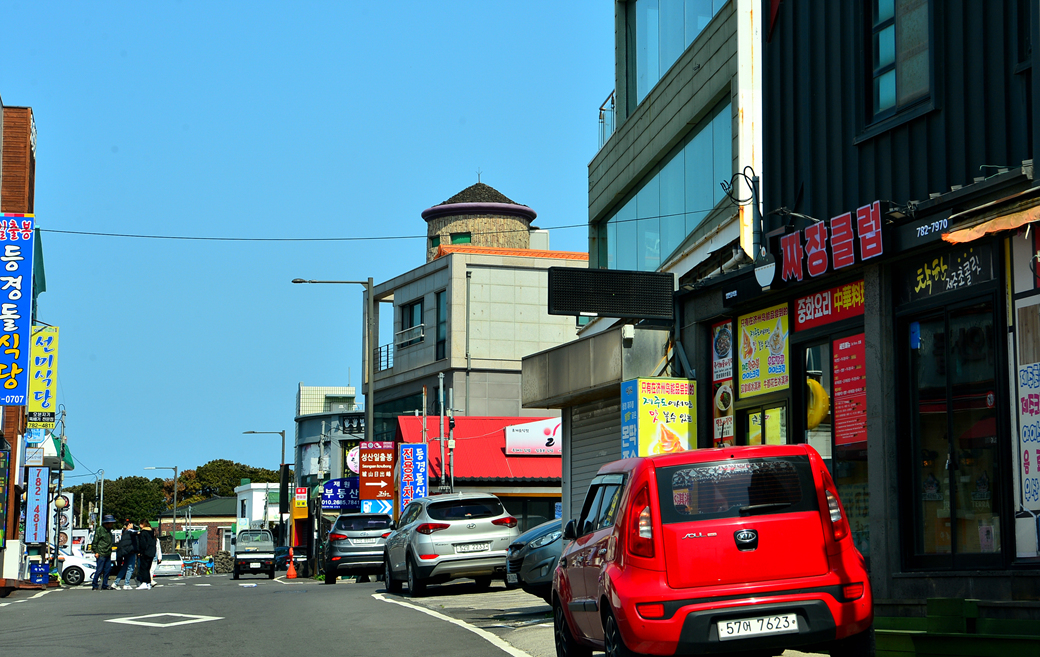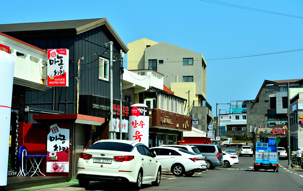 성산 일출봉 앞 상업지역으로 들어선 모습이다.