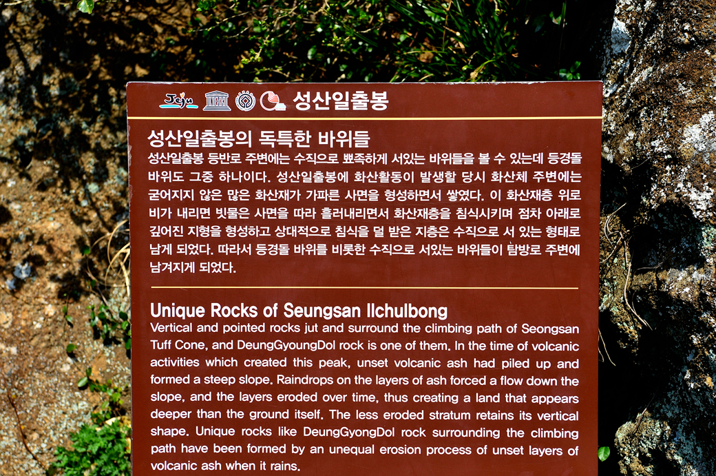 성산 일출봉의 바위들에 대한 설명문도 곁들여 놓았다.
