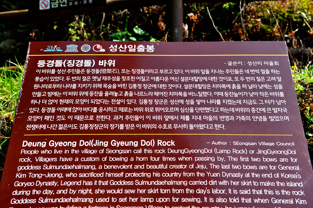성산 일출봉 안내표지판이다.