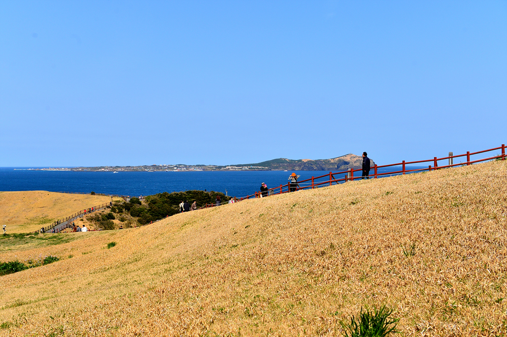 언덕과 바다 너머로 보이는 것은 우도 같은데~