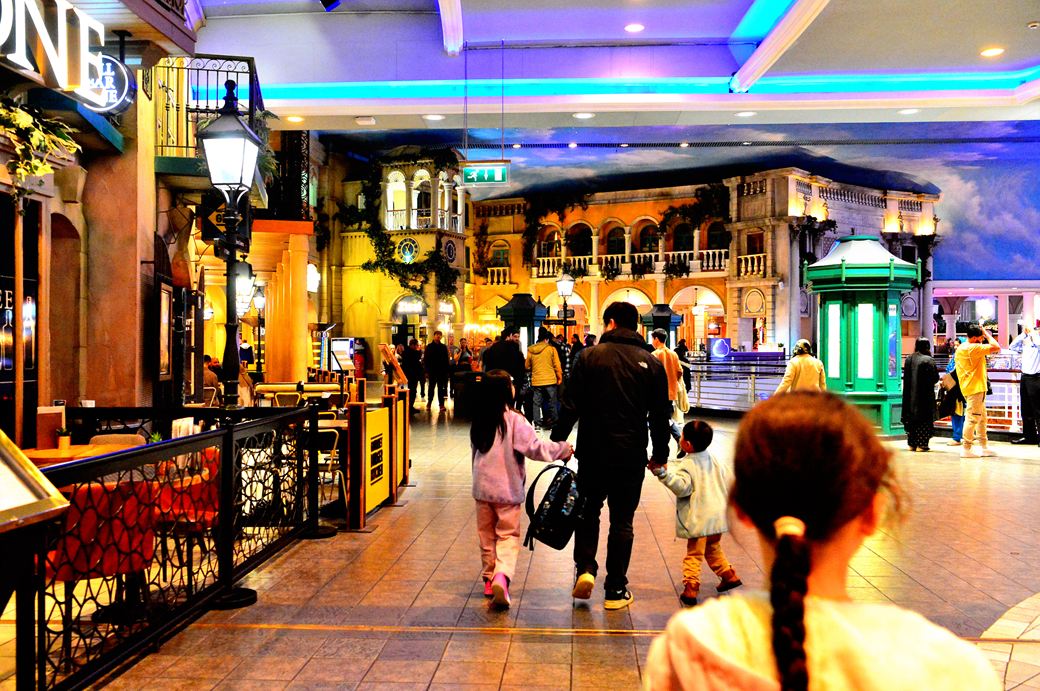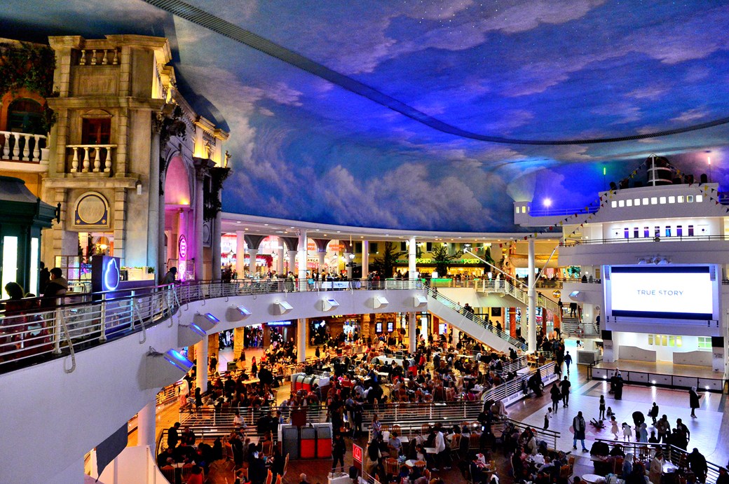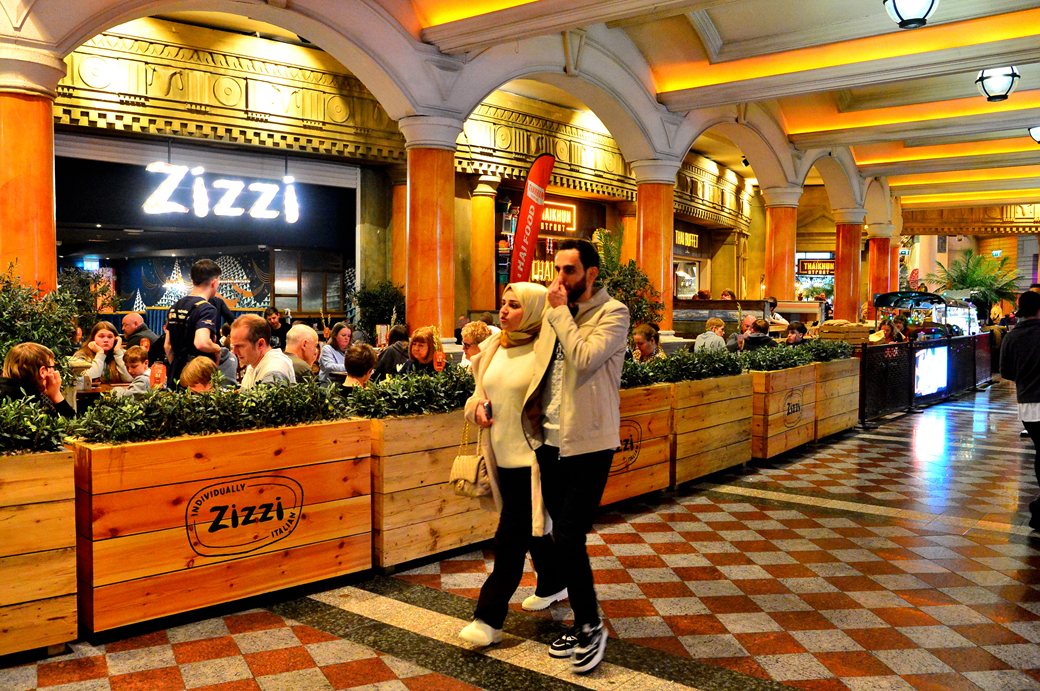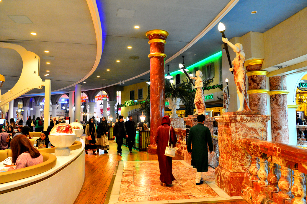 위층의 통로 주변에는 각종 특색 있는 레스토랑이 줄지어 늘어서 있다.