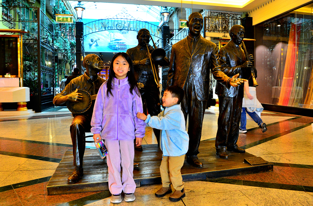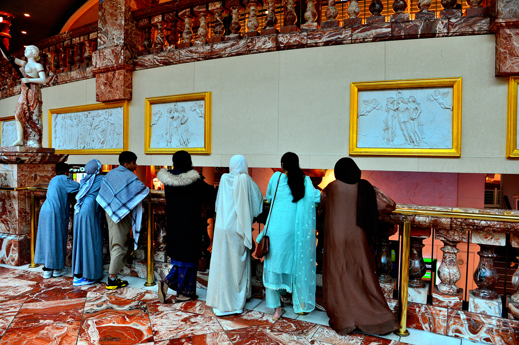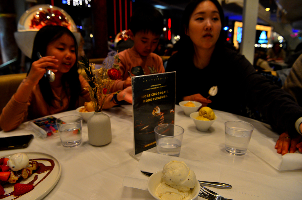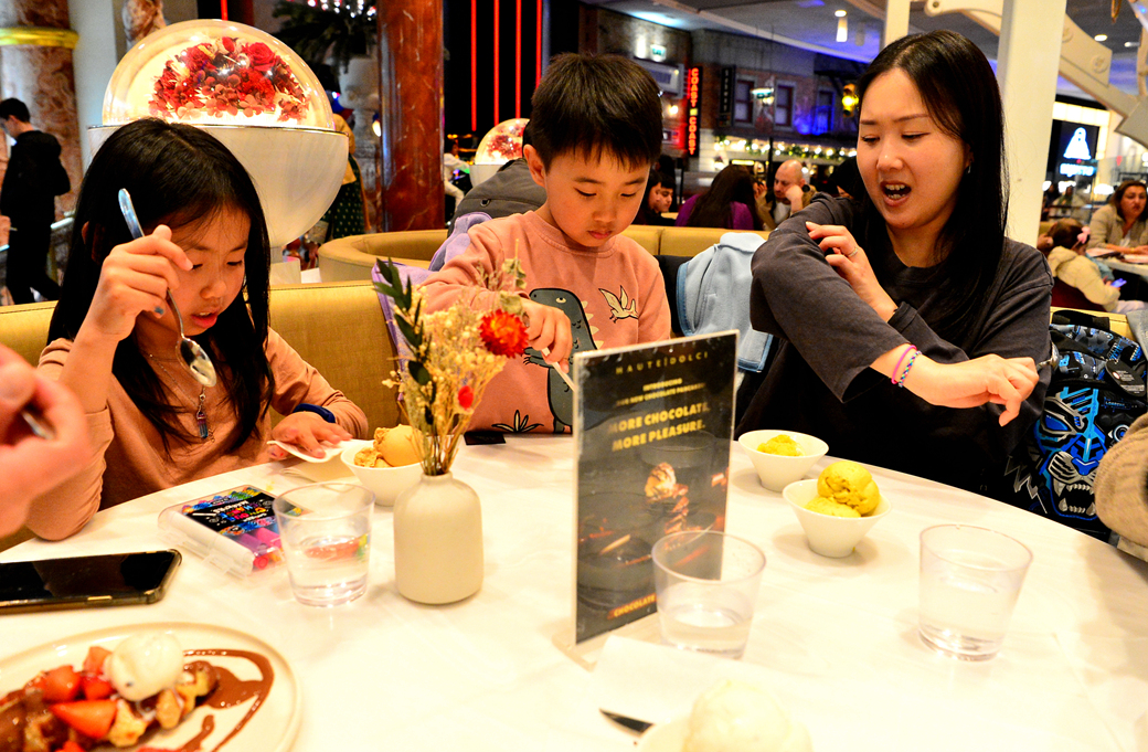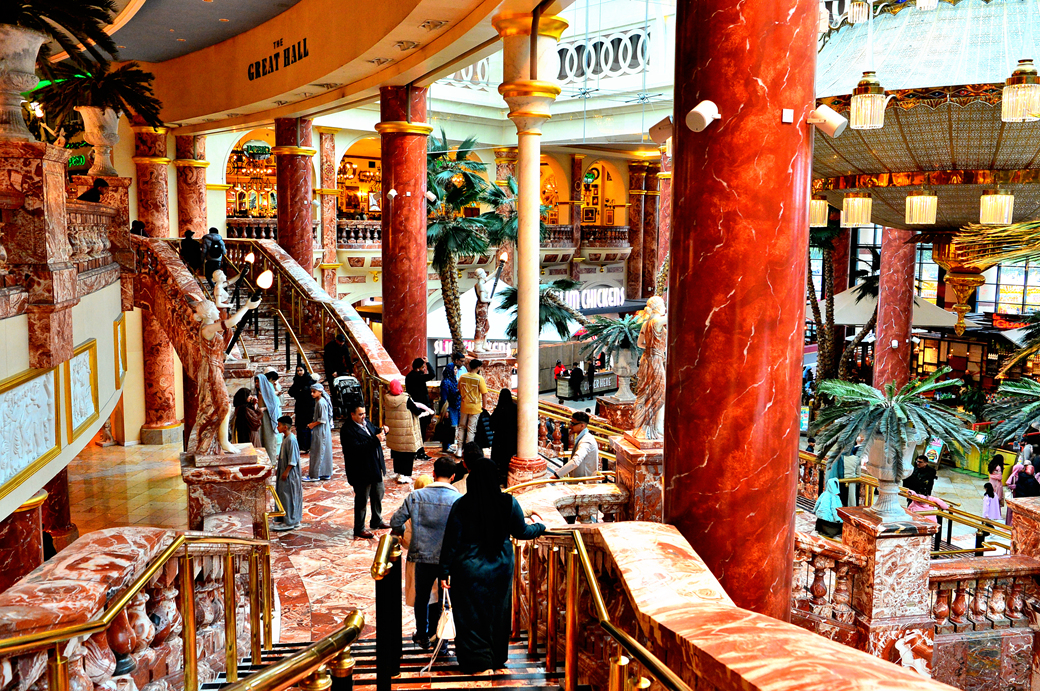 위층의 통로 주변에는 각종 특색 있는 레스토랑이 줄지어 늘어서 있다.