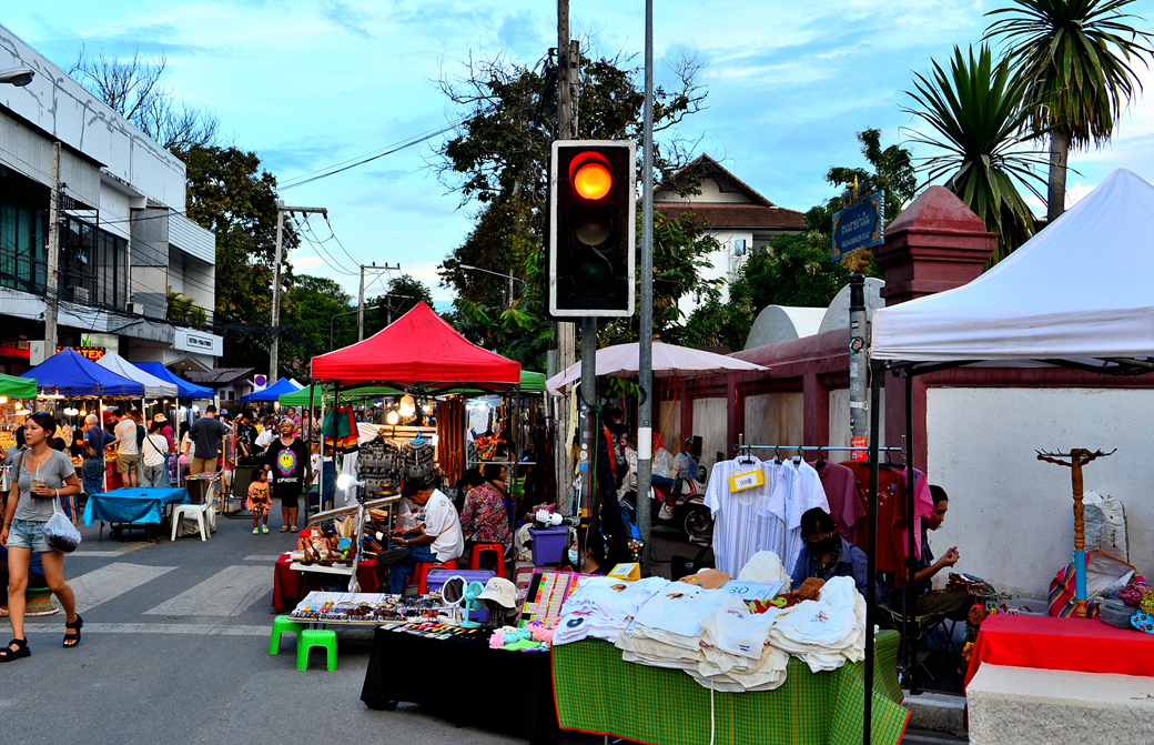 치앙마이 올드시티의 선데이 마켓이 열리고 있는 랏차담는 로드 풍경이다.