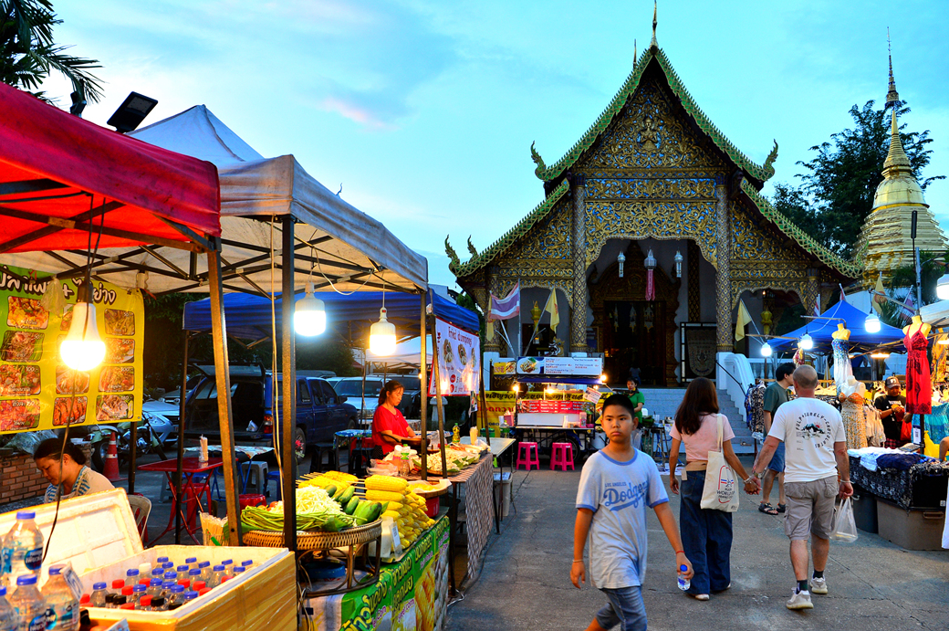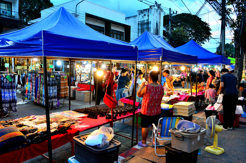 부터 차량이 통제되며 태국 북부 최대 야시장으로 변신한다.