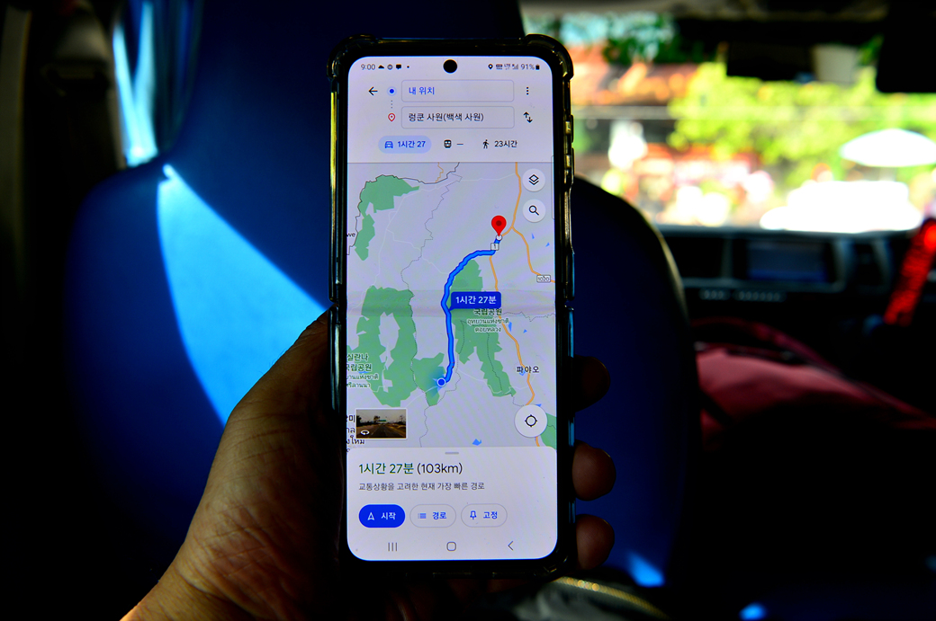 휴게소를 나선 차창으로 본 휴게소 바로 옆 사원 모습이다.