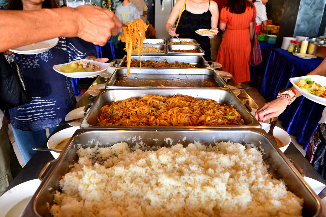 뷔페식당을 찾은 많은 여행객들 모습이다.