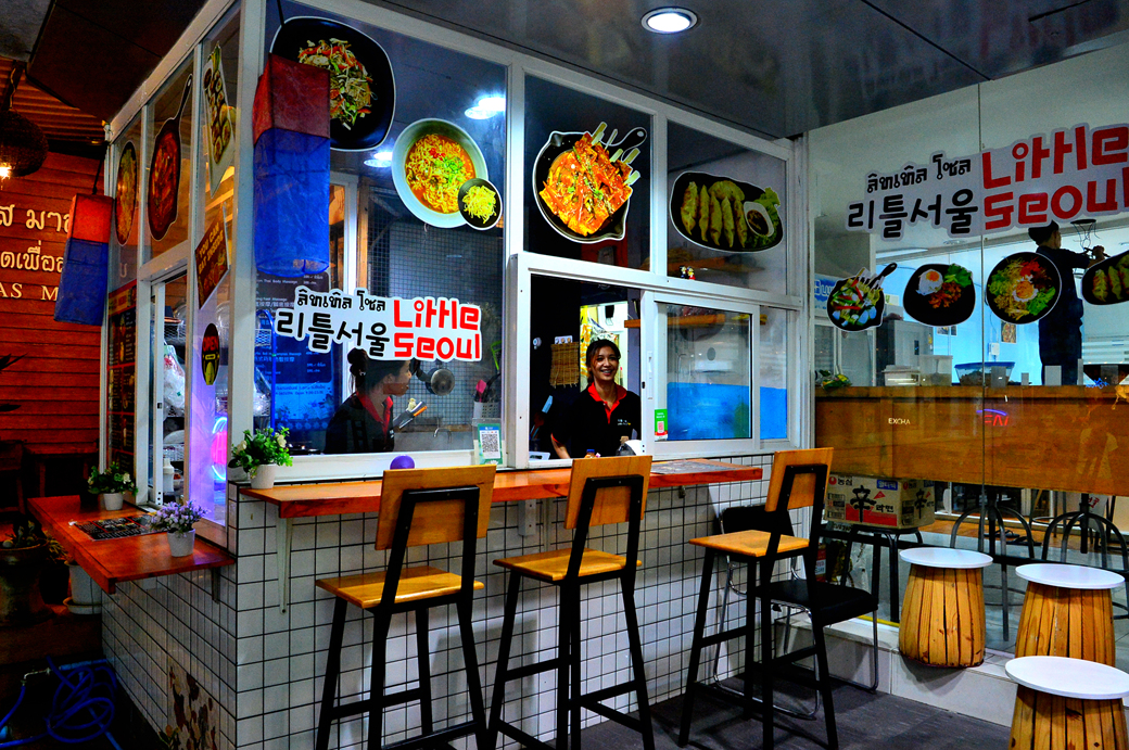 님만해민의 한식당 간판들이 보인다.