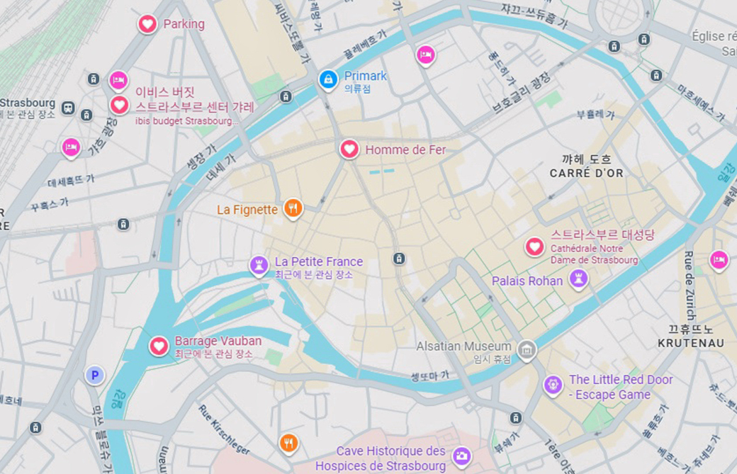 스트라스부르의 대표적인 관광코스로는 높이가 142m에 달하는 대성당과 큰 섬에 위치한 이곳에서 시작되는 '쁘띠 프랑스 Petite France'가 있고~