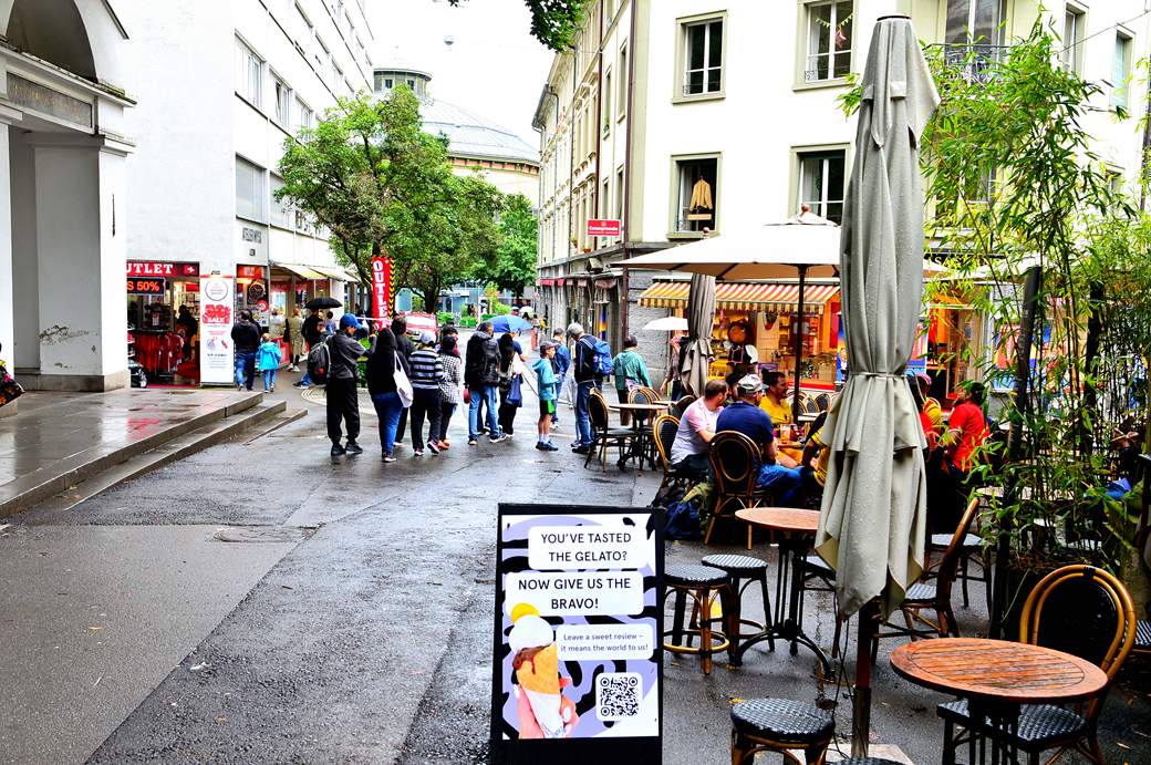 차량 통행이 거의 없는 구시가지의 분주한 거리 풍경이다.
