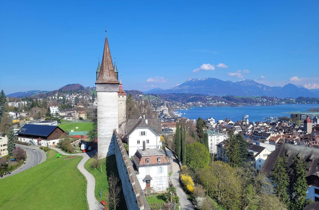 무제크 성벽은 1386년 건설된 성벽으로 당시에는 루체른 전체를 둘러싸고 있었으나 지금은 구시가 북쪽 900m 정도와 100m 간격으로 있는 탑만이 남아 있다고 한다. 이중 3개의 탑이 여름철에 내부 견학이 허용되며 루체른 시민의 산책로로 사랑받는 공간이라고 한다.