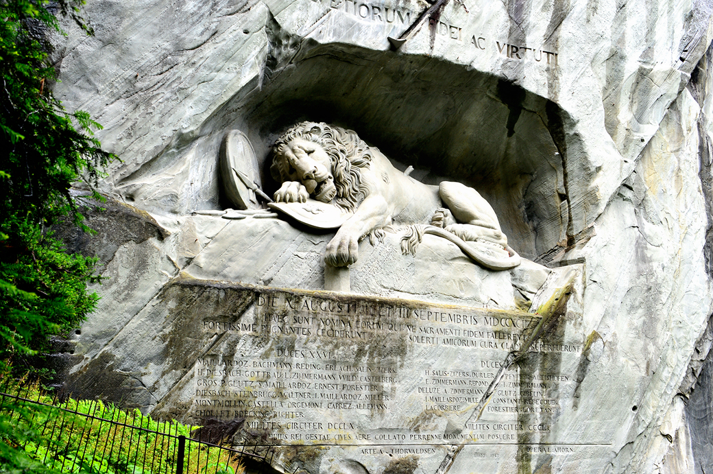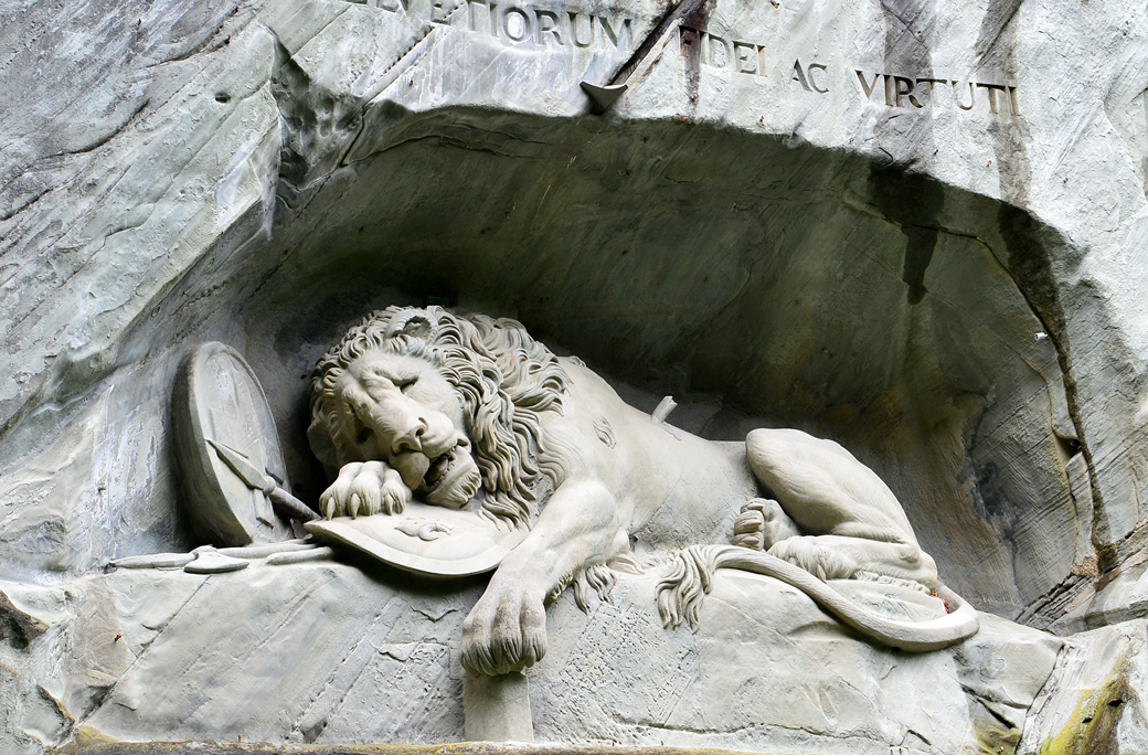 사자상 위쪽에 새겨진 문구 'Helvetiorum Fidei ac Virtuti'는 '스위스의 용맹과 충성심을 기리며'라는 그들의 정신을 표현한 것이라고 한다.