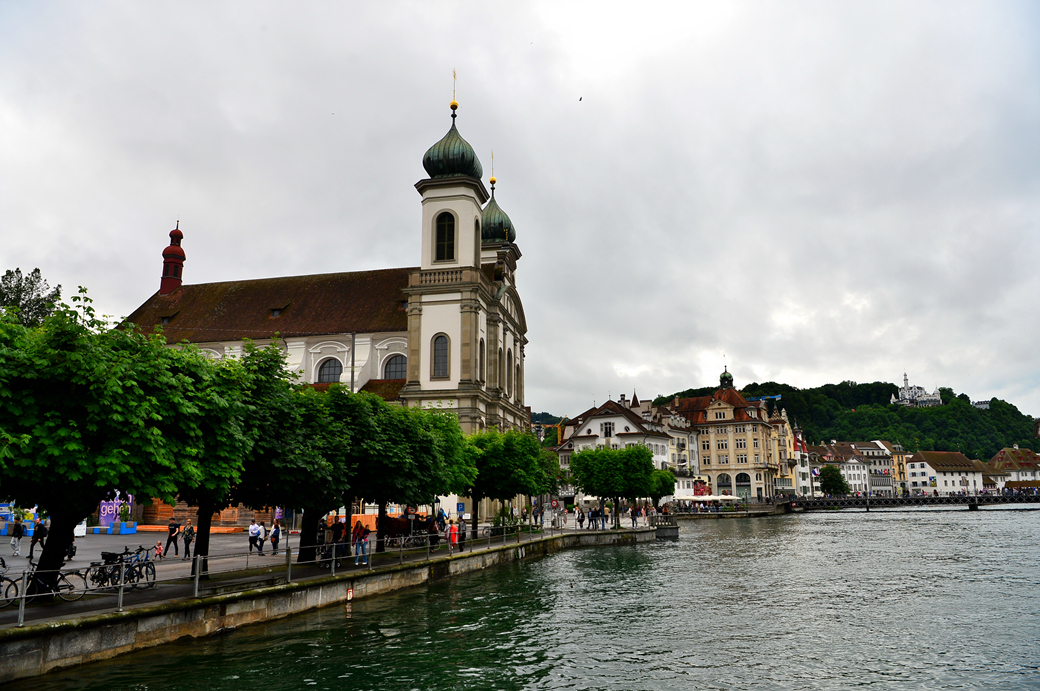 건물 양쪽 탑 위 양파 모양의 돔이 인상적인 이 교회는 1666~1677년 사이에 지어진 스위스 최초의 대규모 바로크 양식 성당이라고 한다. 처음에는 인근 학교의 부속 기관으로 건설되었으며 지금도 루체른 음악학교의 교회음악과에서 주최하는 음악회가 자주 열리는 곳이라고 한다.