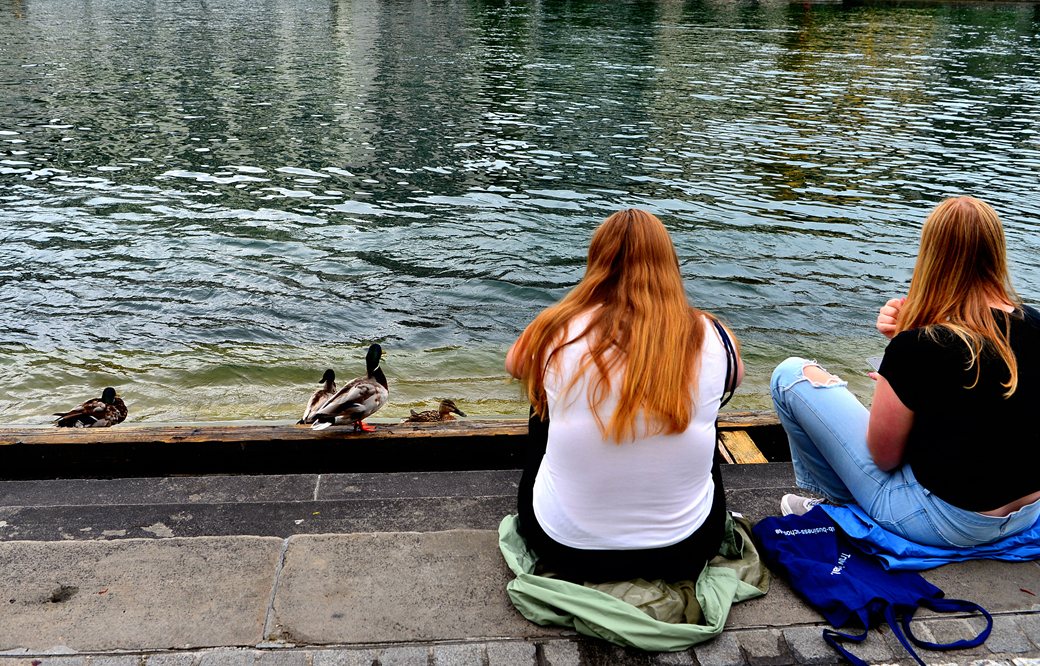 교회 앞 강으로 이어지는 계단에서는 오리들이 평화롭게 노닐고 있다.