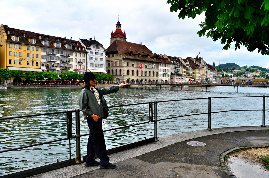 좁은 강변길에서 만난 석조물 앞에서 열심히 설명을 듣고 있는 일련의 관광객 모습이 보이는데, Jesuitenbrunnen, Luzern이라 불리는 이 석조물은 스위스 도시의 전형적인 더위를 식히거나 물을 마실 수 있는 많은 분수 중 하나라고 한다.