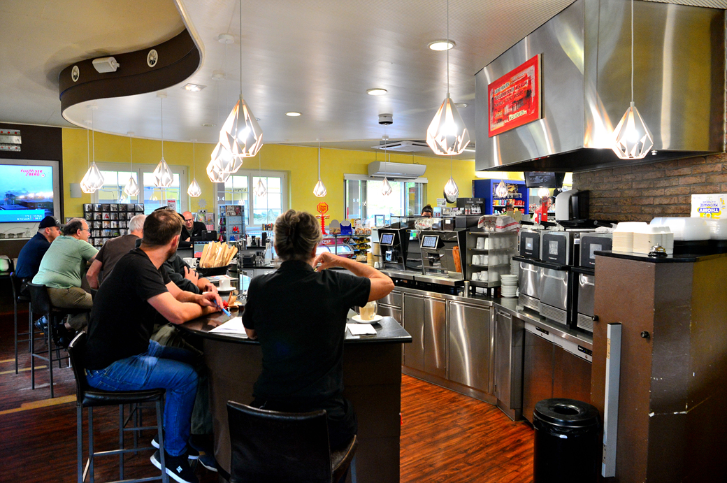 조용한 휴게소 안 표정이다.