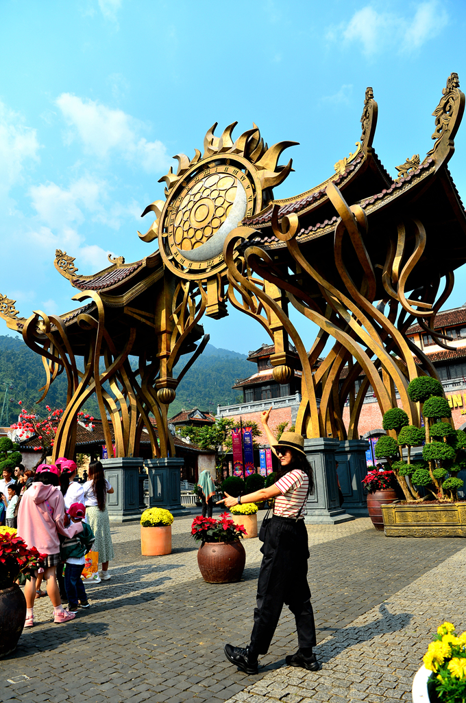 바나 힐 장식판 앞에서 기념사진을 남긴다.