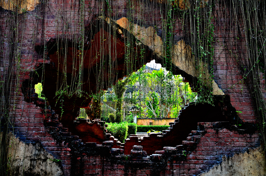 허물어 낸 벽돌 벽 사이로 보이는 풍경도 운치 있다.