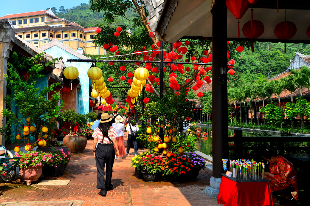 나뭇가지에 빨간 홍등을 매달아 놓은 모습이 베트남 답다는 느낌을 안겨 준다.